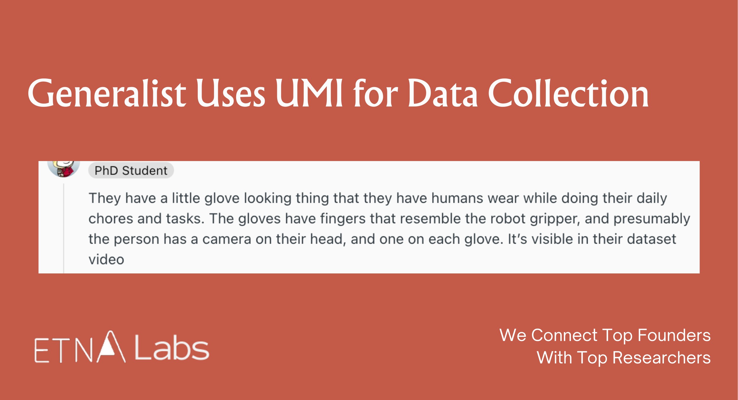 A comment on Reddit mentioned that the company collects data using gloves, with the fingers of the gloves resembling the robotic grippers, allowing humans to wear them while performing everyday chores and tasks. Based on a data collection video released by the company, it is inferred that the wearer has a camera mounted on their head, with each glove also containing a camera.