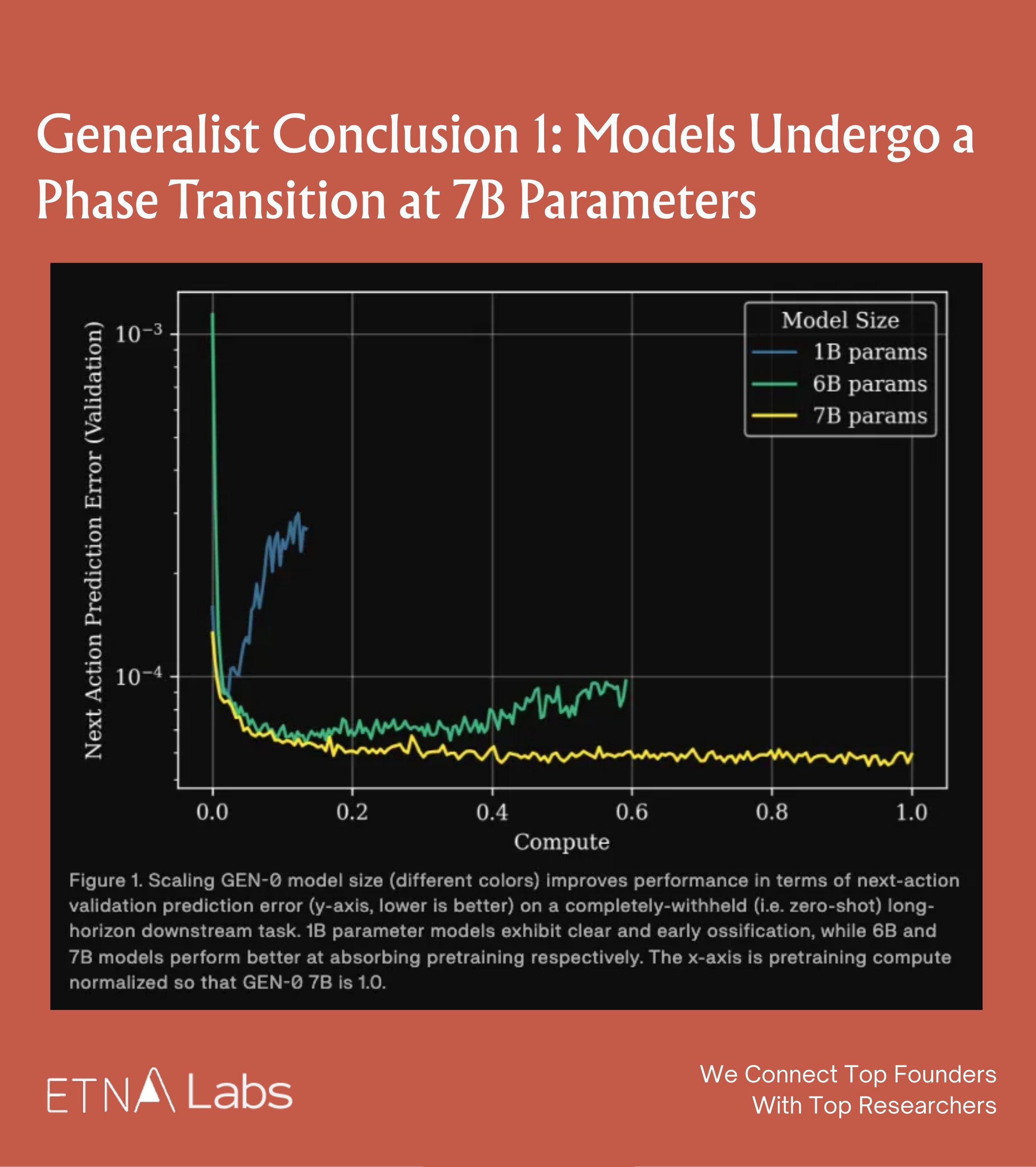 When the Generalist team studied the effect of model parameter size on learning ability, they observed a distinct phase transition phenomenon: