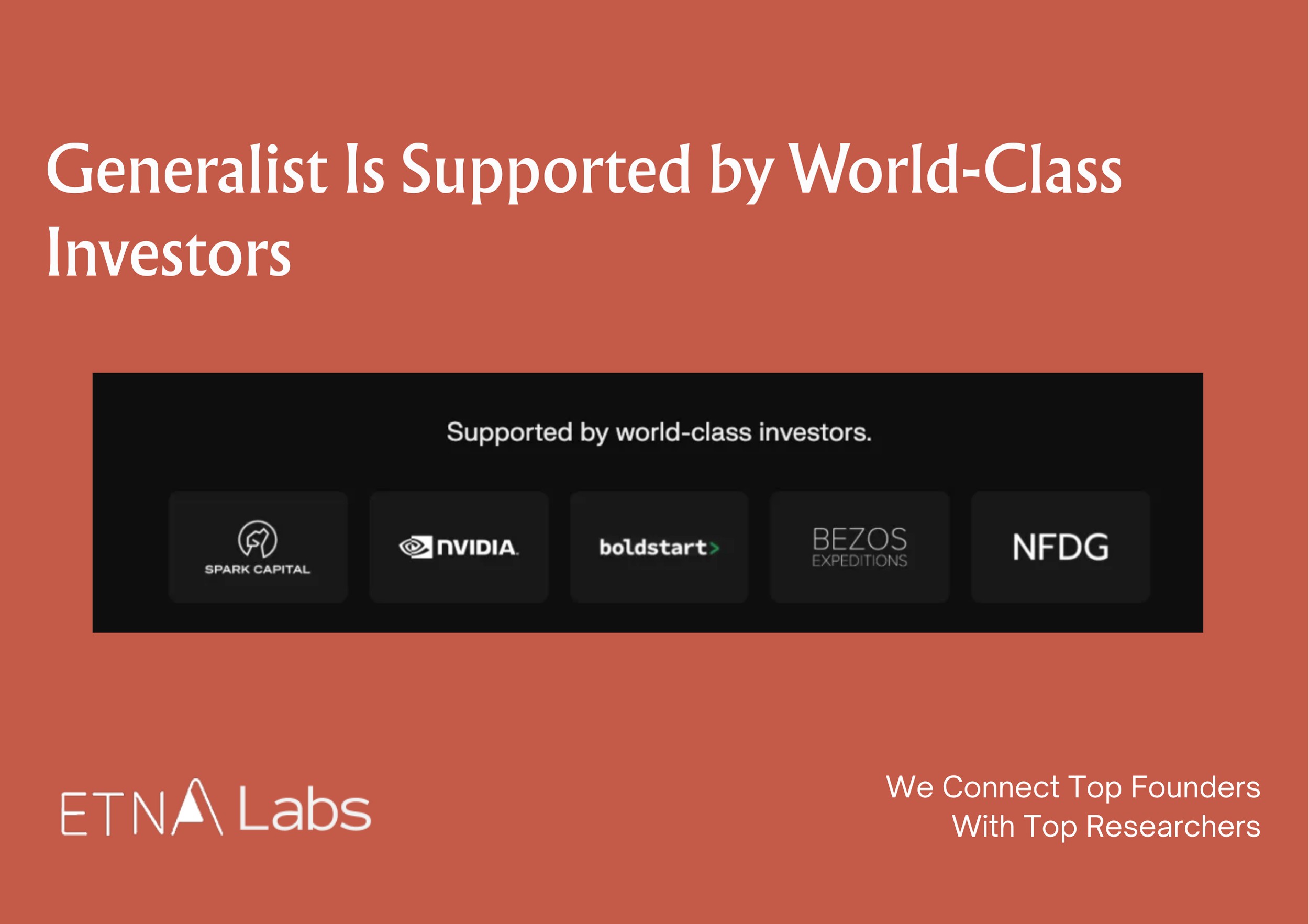 In addition to Generalist, the first cohort also includes Bedrock Robotics, Blue Water Autonomy, Diligent Robotics, RobCo, Tutor Intelligence, Wandercraft, and Zordi.