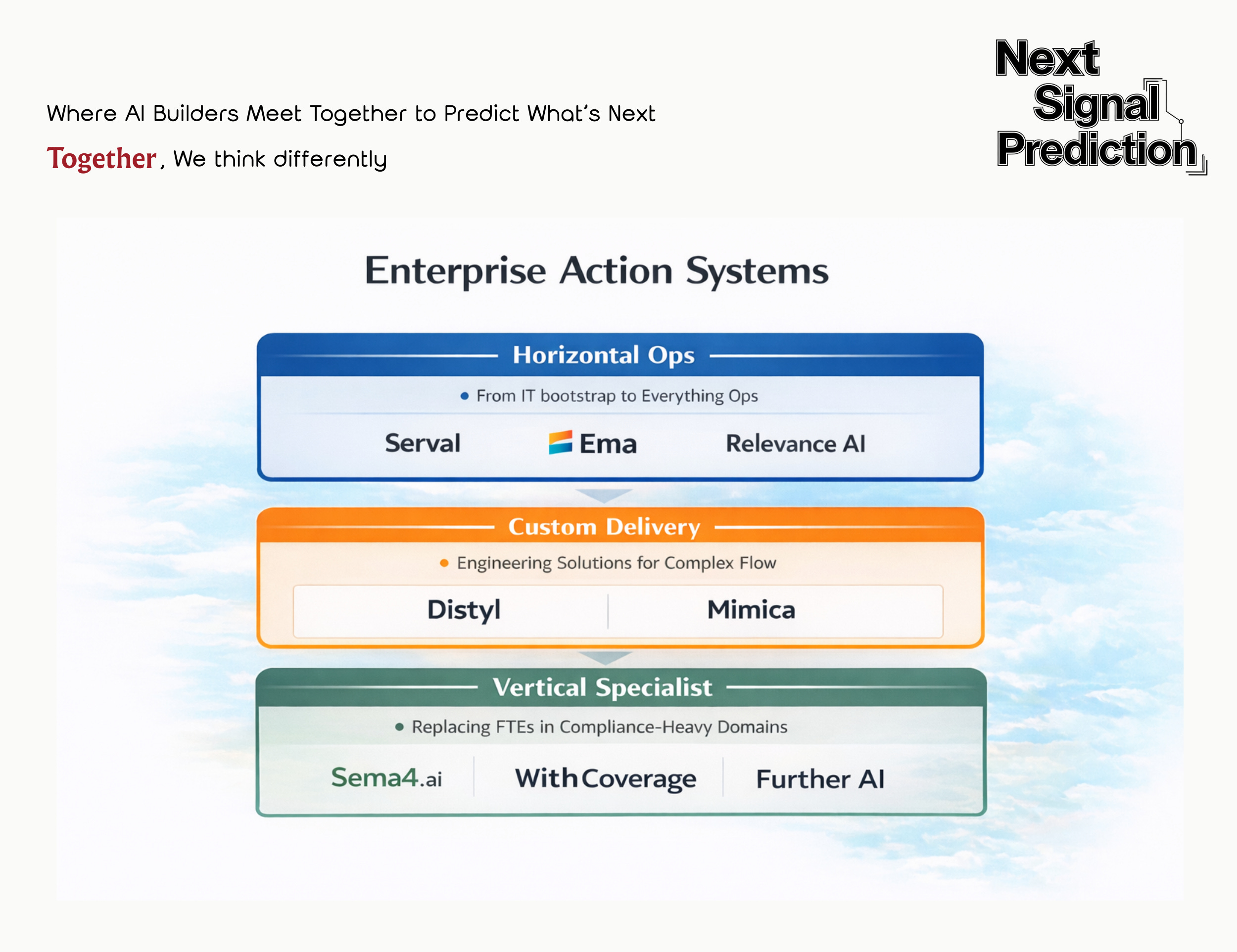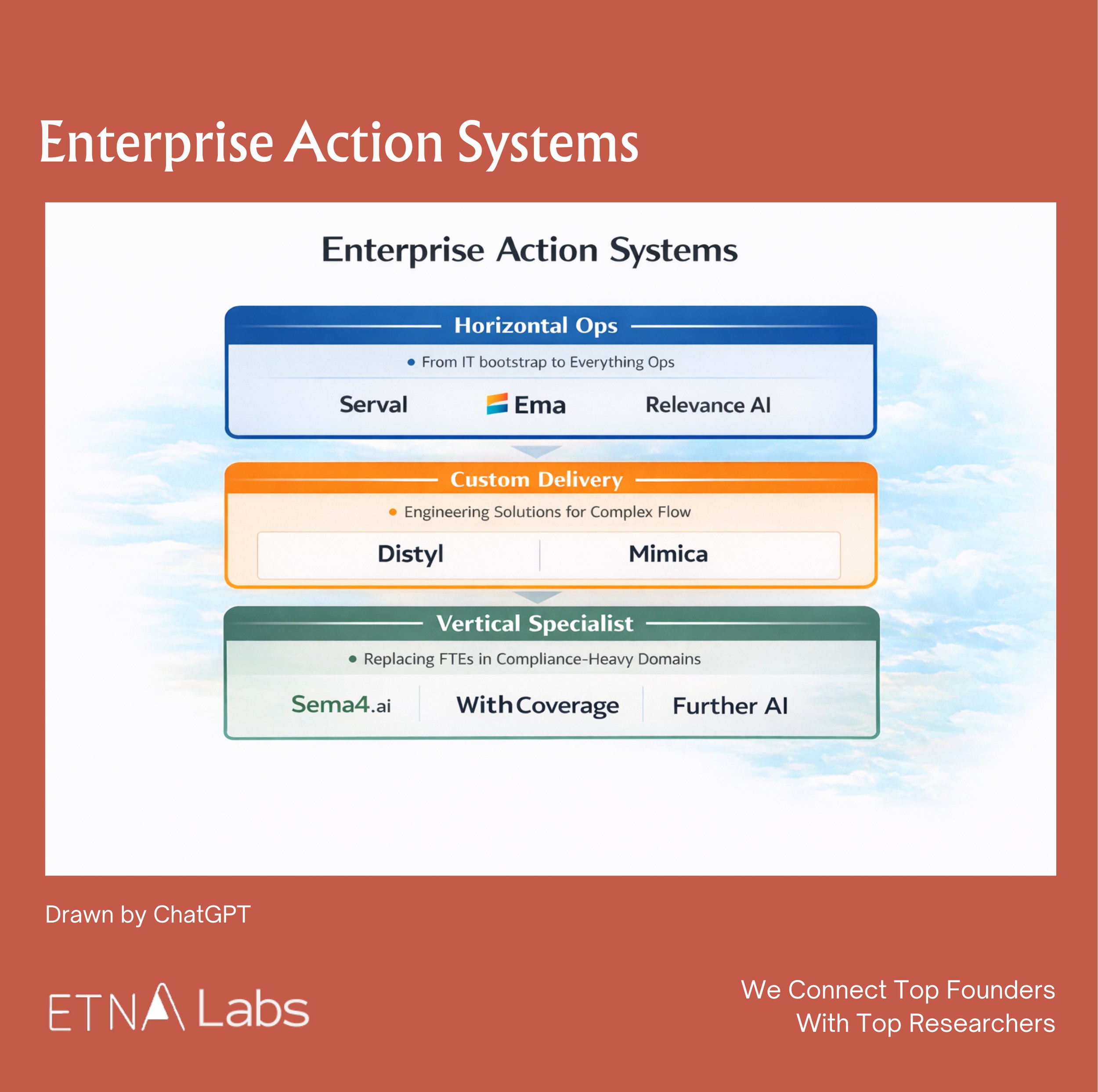 These companies typically enter through IT, HR, or finance ticketing and workflow, deploy a unified agent execution layer across multiple departments, and target becoming the internal action hub of the enterprise.