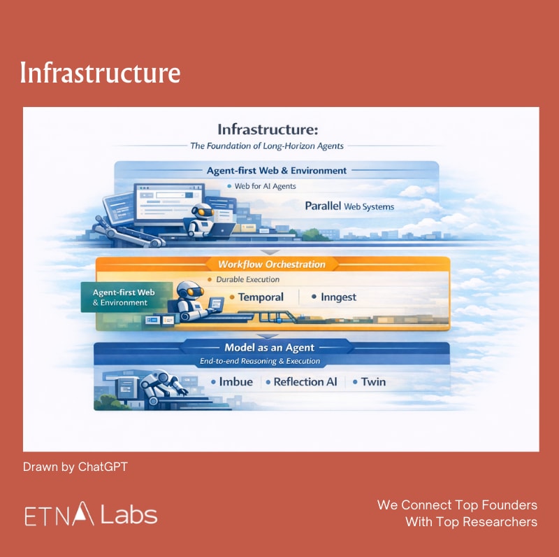 Agents require state management. In many cases, agent task failure is not a model intelligence problem — it is a failure to maintain state across a long-running execution. Long-horizon agents are long-lifecycle software. They must execute across hours or days and run continuously across asynchronous systems. Durable execution and state management are emerging as a new infrastructure layer.